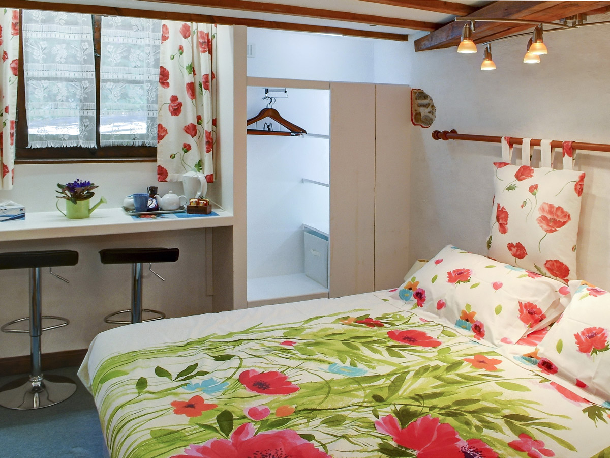 The room comprises a ground floor sitting room and shower/WC with a mezzanine sleeping gallery above. The sleeping gallery has a double bed as well as a single bed - it is used as a double- or twin-bedded room.