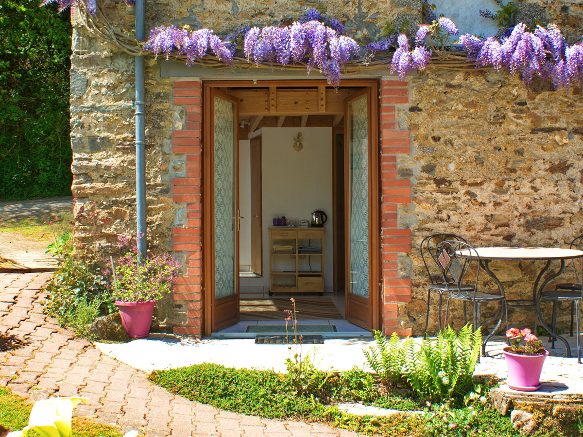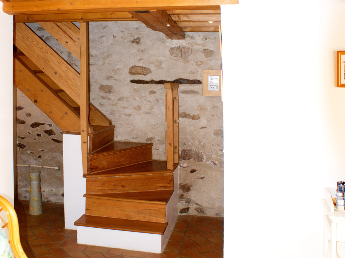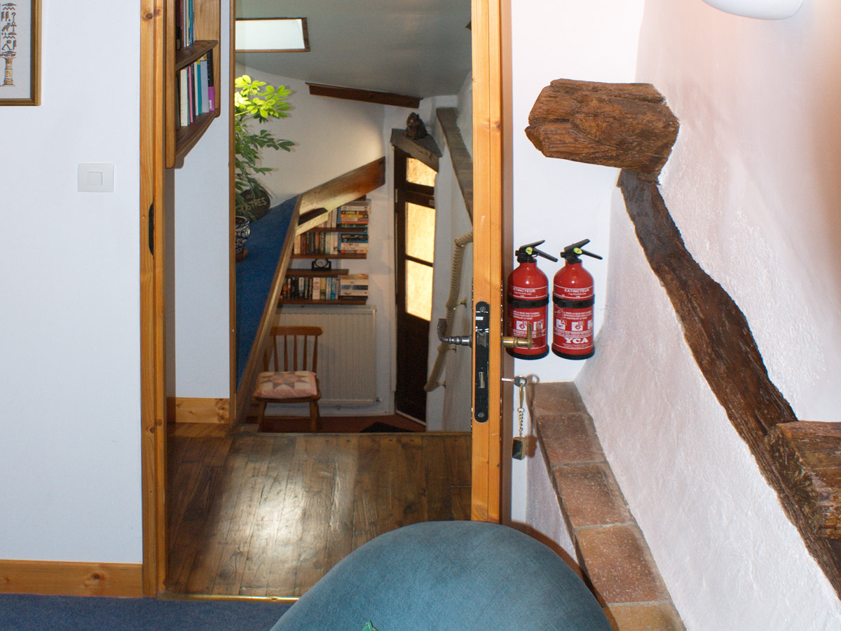 Le Moulin du Chemin is constructed on the side of a shallow valley on three floors, stepped one above the other and cut into the hillside. La Clochard on the second floor and is accessed by an external flight of stairs from the Pergola to the Guests’ Landing and a further flight of stairs from the Guests’ Landing to la Clochard .