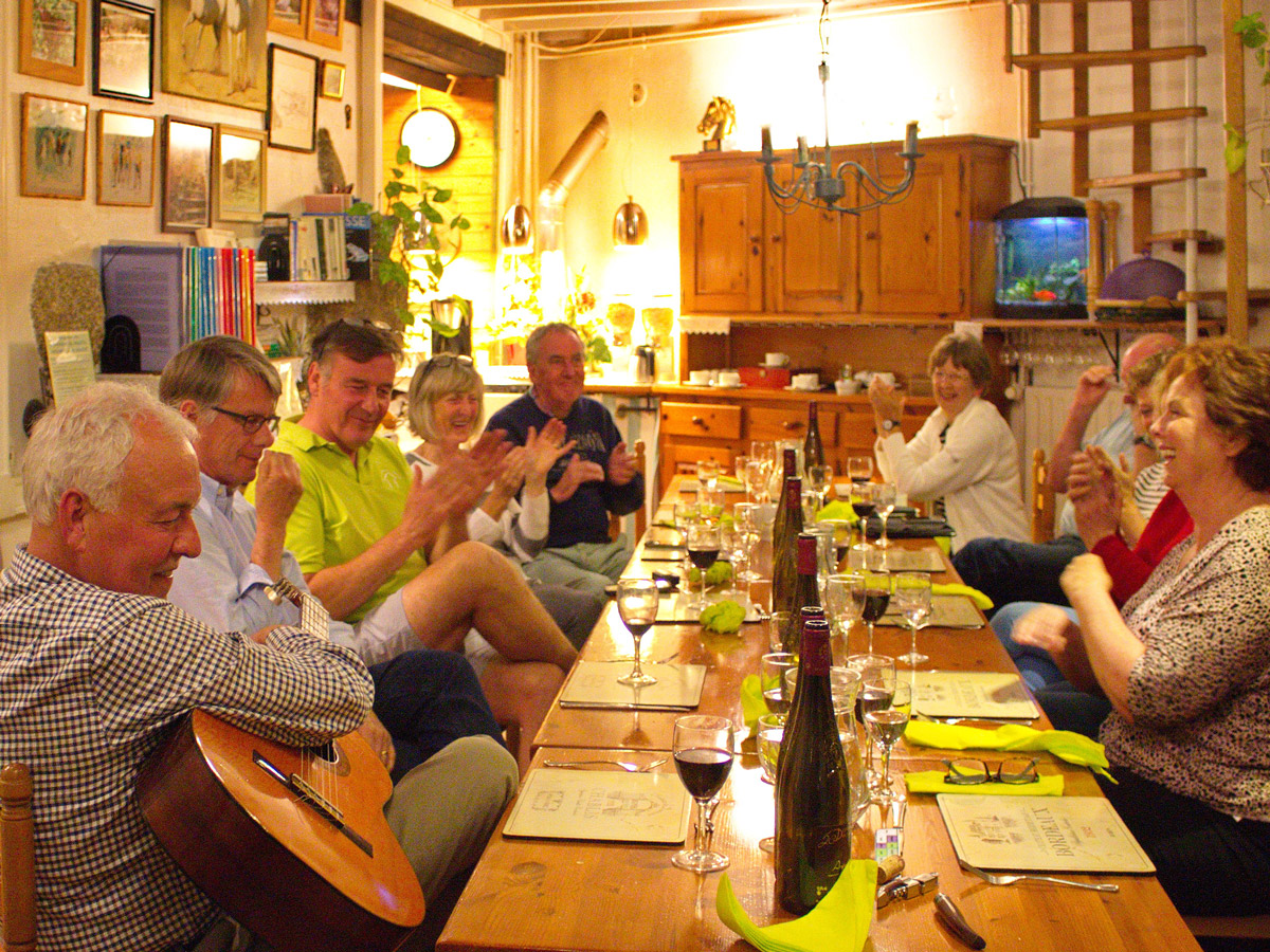 - Aperitifs-at-seven is followed each evening by a lively four-course evening meal with excellent food, plenty of superb wine, animated conversation, great bonhomie and a marvellous ambiance.