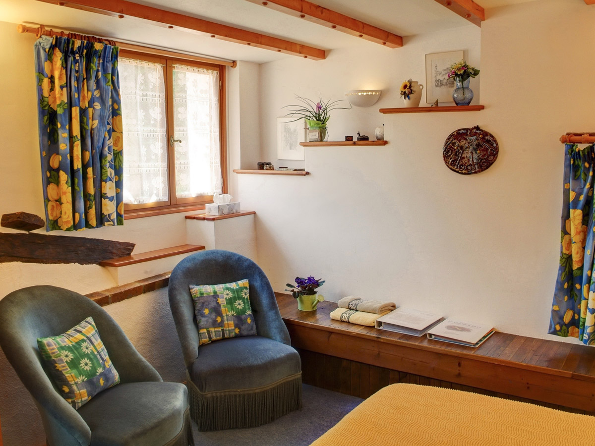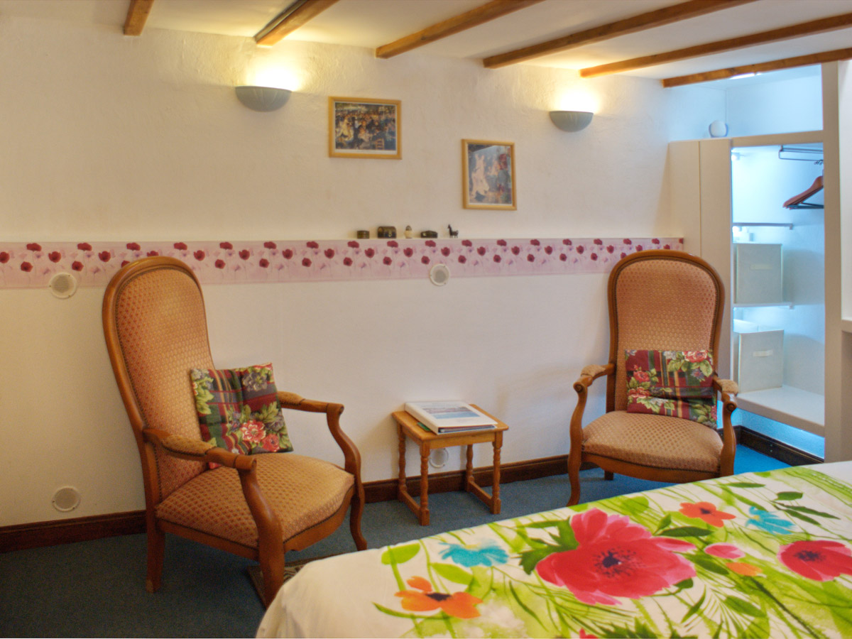 The room comprises a ground floor sitting room and shower/WC with a mezzanine sleeping gallery above. The sleeping gallery has a double bed as well as a single bed - it is used as a double- or twin-bedded room.